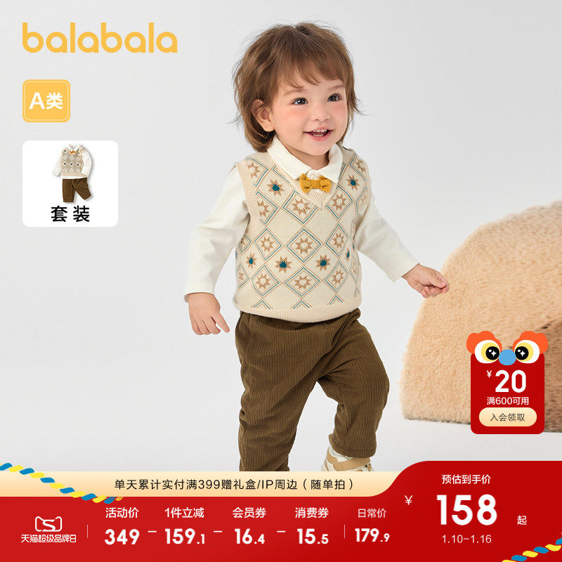 巴拉巴拉童装宝宝长袖套装秋冬装2025男童三件套加绒休闲保暖时尚