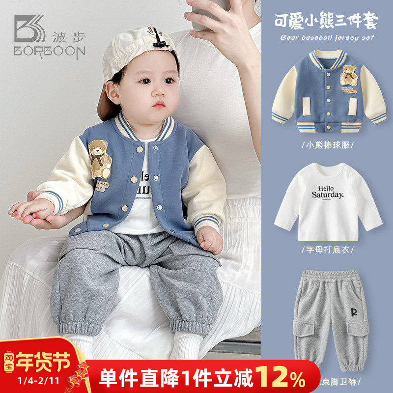 男宝宝套装冬装新款男童棒球服分体三件套秋冬款外套婴儿加绒衣服
