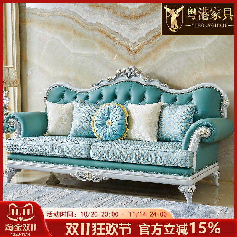 欧式真皮沙发美式别墅奢华客厅实木雕花水性漆1234描金银组合沙发