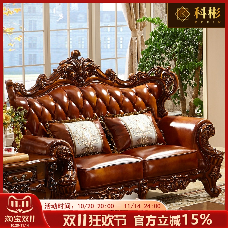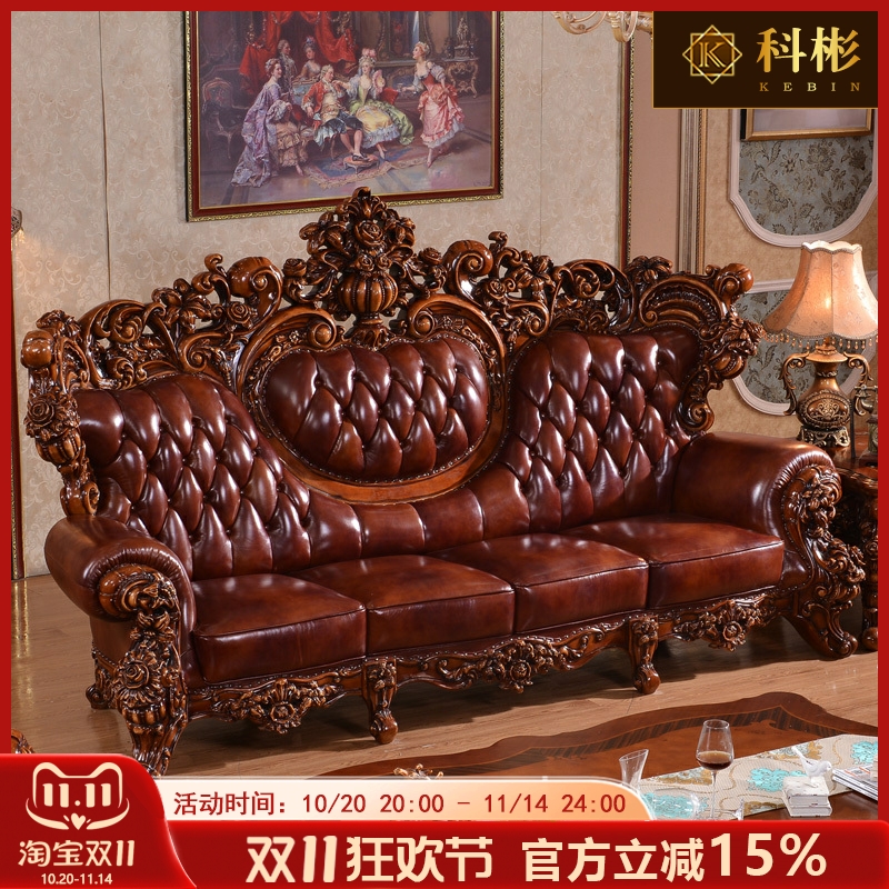 欧式沙发真皮实木雕花客厅家具高档美式奢华别墅头层牛皮123组合