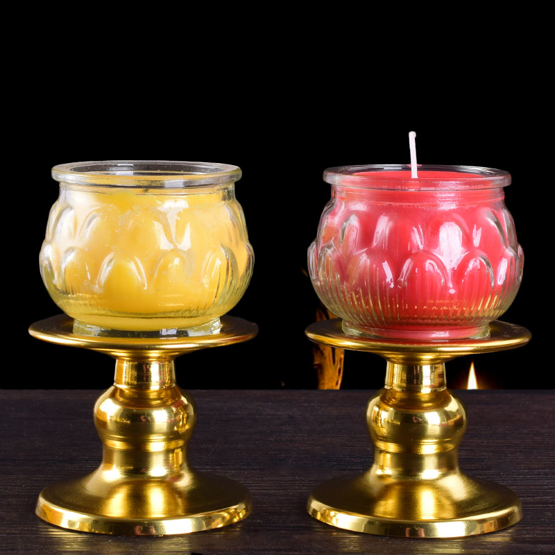 供佛古法琉璃防风烛台佛前莲花4小时酥油灯座供佛灯蜡烛底座包邮