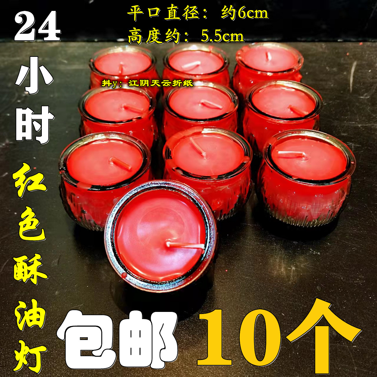 包邮10个24小时红色平口莲花酥油灯无烟蜡烛植物酥油斗烛长明灯