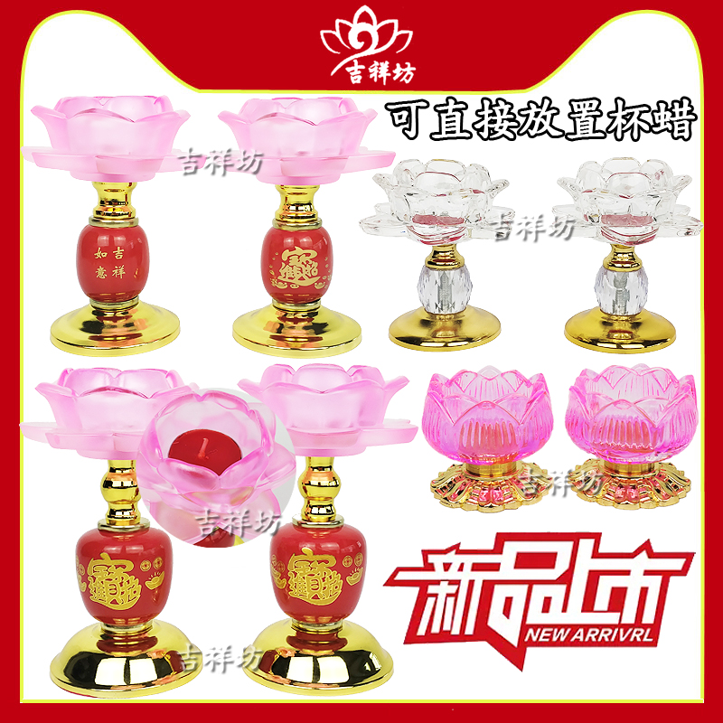 24小时平口莲花酥油灯蜡烛灯长明灯佛前供灯家用烛台配油灯包邮
