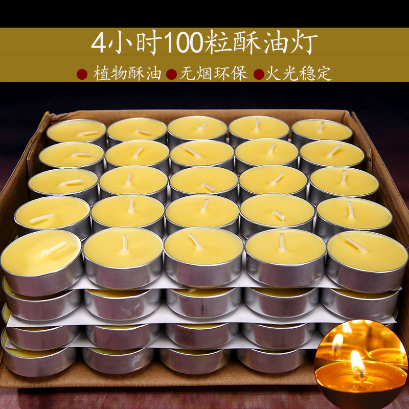 包邮黄色酥油灯4小时100粒无烟酥油蜡烛 天然酥油灯供灯佛灯寺庙