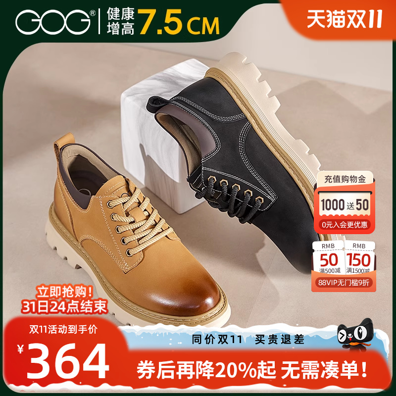 高哥增高鞋男6cm秋冬内增高休闲皮鞋男士真皮商务软底爸爸男鞋8cm