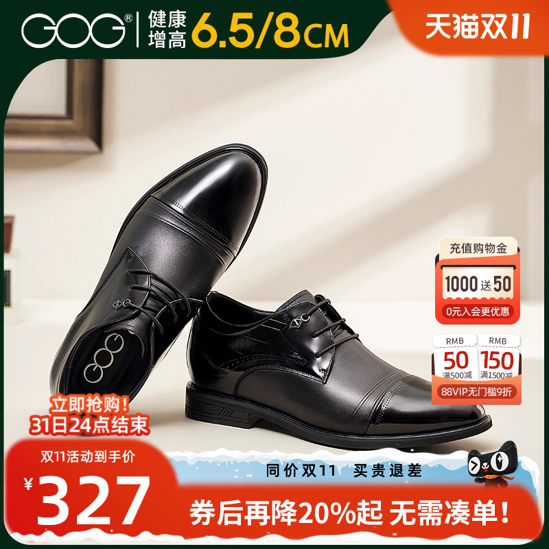 高哥8cm增高鞋男商务真皮男鞋轻便加绒鞋子结婚隐形内增高皮鞋