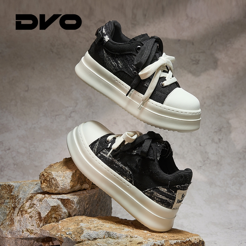 DVO8CM隐形内增高鞋男潮流黑色蕾丝双鞋带帆布鞋透气休闲厚底板鞋