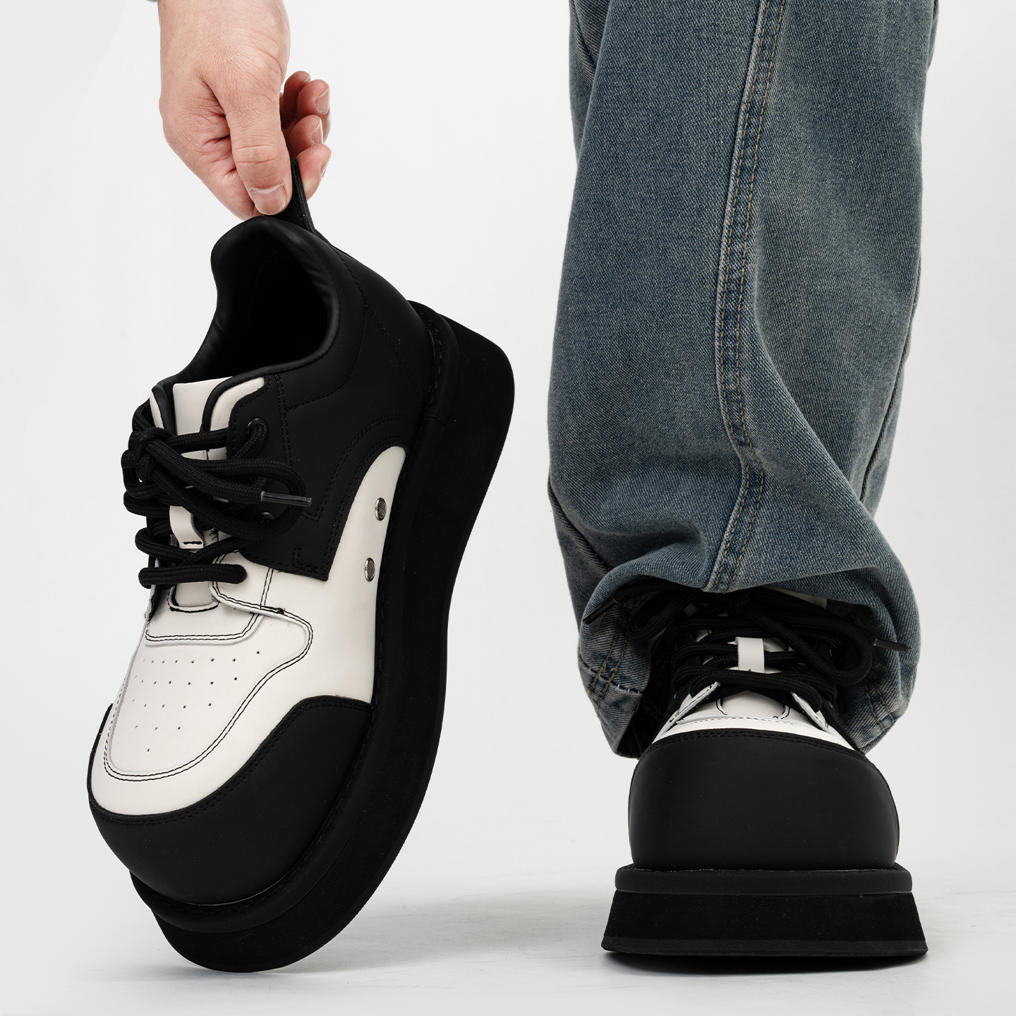 美式黑白大头米奇鞋男8cm隐形内增高板鞋哑光厚底休闲松糕面包鞋