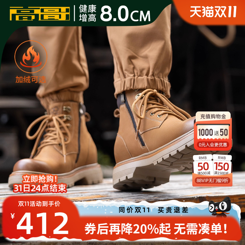 高哥内增高马丁靴厚底工装鞋子户外男鞋轻便头层牛皮靴子增高8cm