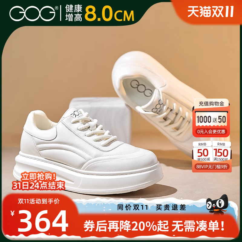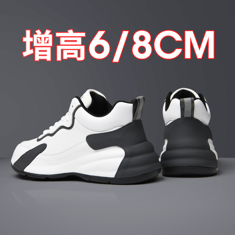 高哥增高鞋8cm新款休闲板鞋皮面运动男鞋轻便厚底内增高小白鞋男