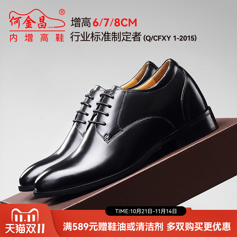 何金昌内增高皮鞋男真皮10CM结婚新郎鞋隐形增高商务正装鞋6/8CM