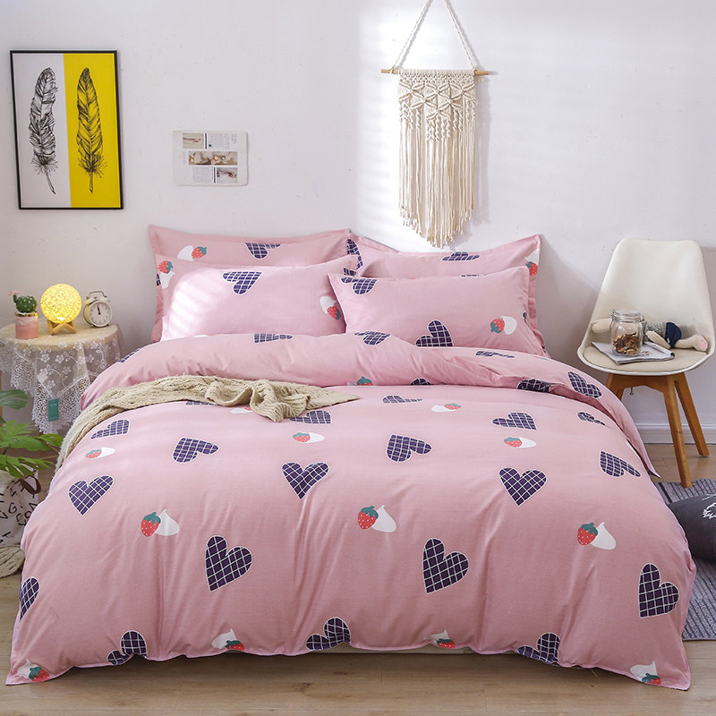 屿橙新款全棉小清新四件套A类亲肤裸睡被罩单人纯棉被套卡通床单