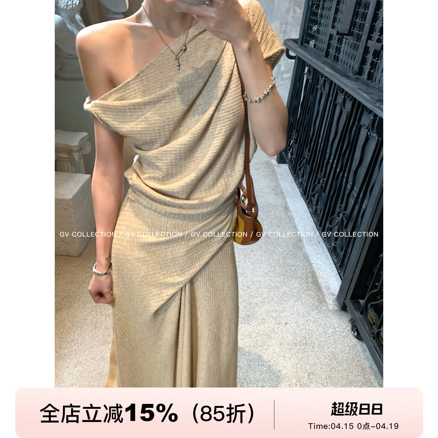 GV大白哥 淡人舒适区 捏褶华夫格肌理嘎上衣半身裙套装春夏新款女