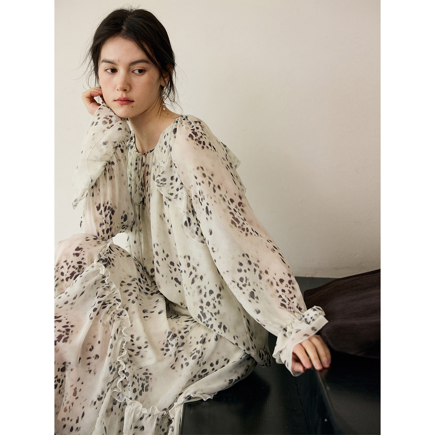 aaaaxbbb 布达佩斯晚香玉 不规则剪裁花边套装木耳边上衣半身裙女