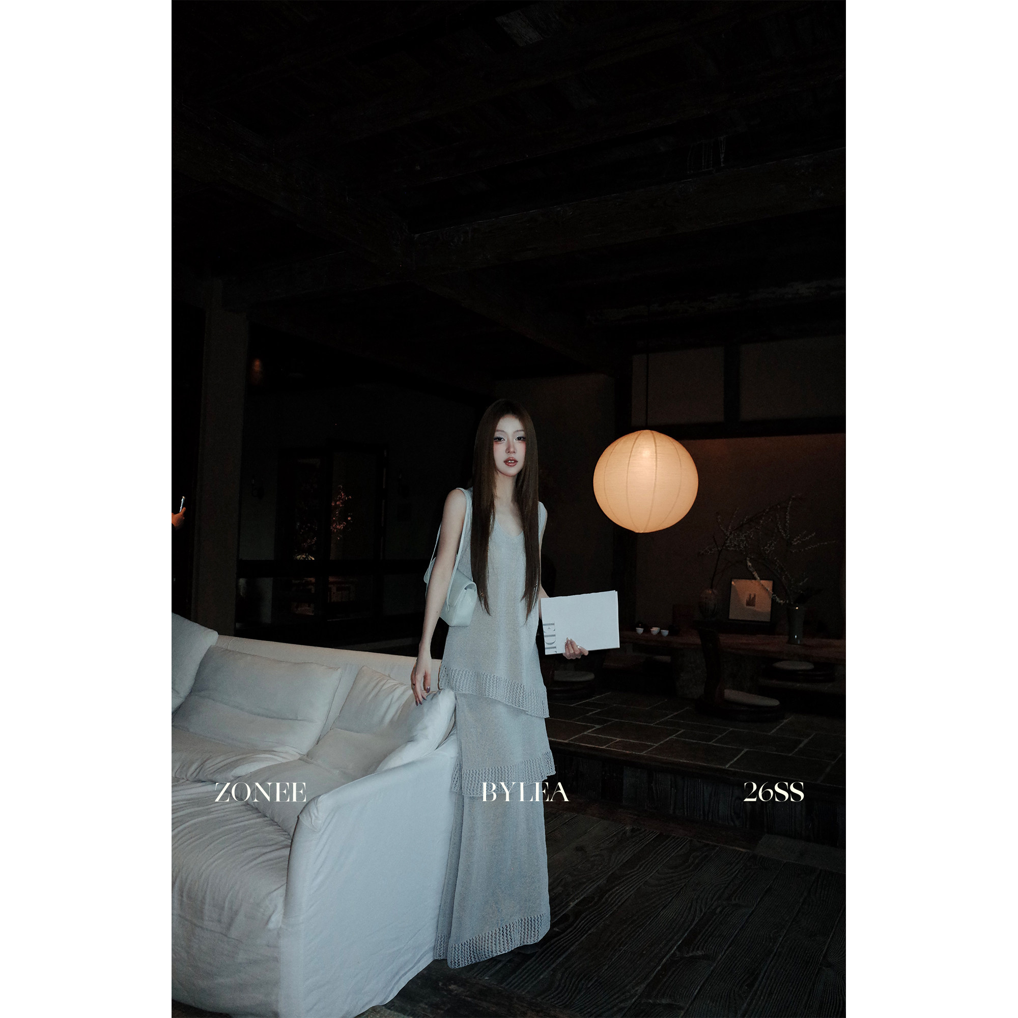 ZONEE/LEA宋亦雯 灰色陶瓷 法式慵懒V领针织背心上衣半身裙套装女