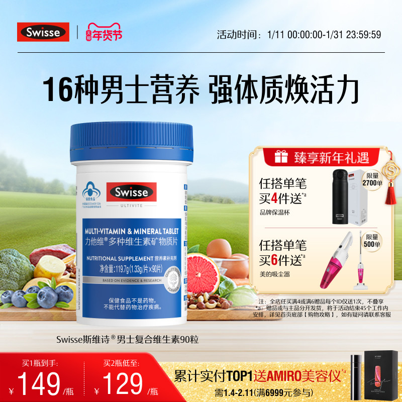 Swisse斯维诗男士多种复合维生素b族蓝帽b12维d3矿物质锌硒免疫力
