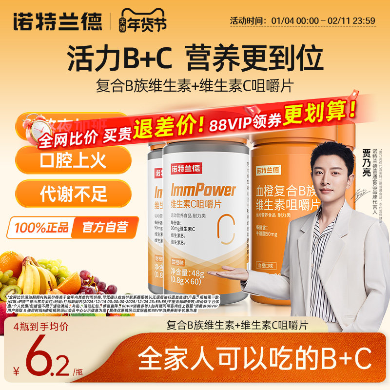 诺特兰德复合维生素b族维生素c咀嚼片男女士多种维b12b3b6b12正品