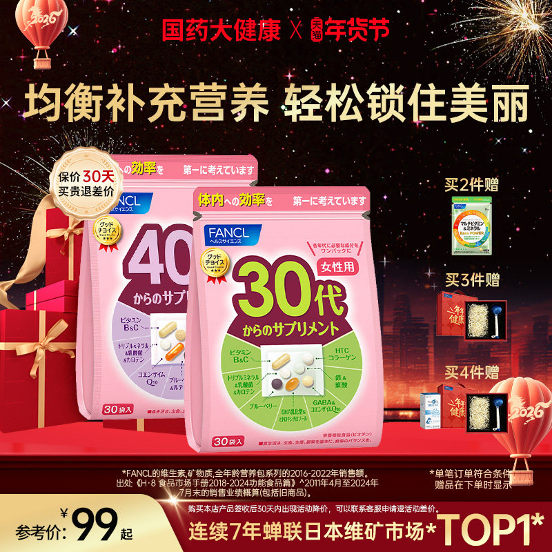 FANCL30岁女士每日营养包辅酶男士复合维生素B族胶原女维VC保健品