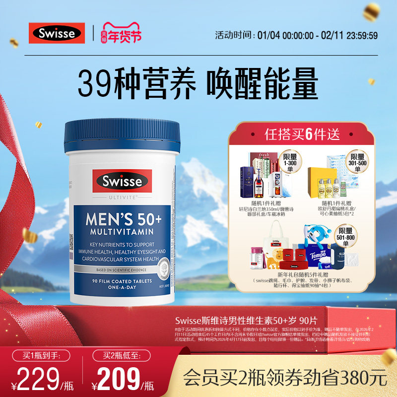Swisse斯维诗中老年复合维生素b片50+岁男士vA叶黄素矿物质生物素