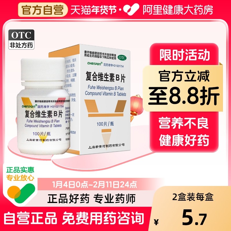 复合维生素B片otc药房国药准字旗舰店b6官方b2新黄河vbbotc小白瓶