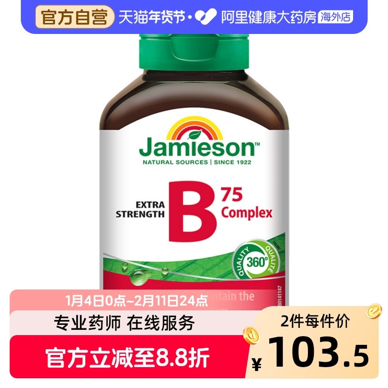 jamieson健美生复合维生素b族复合片bB12 b6 90粒肌醇熬夜常备