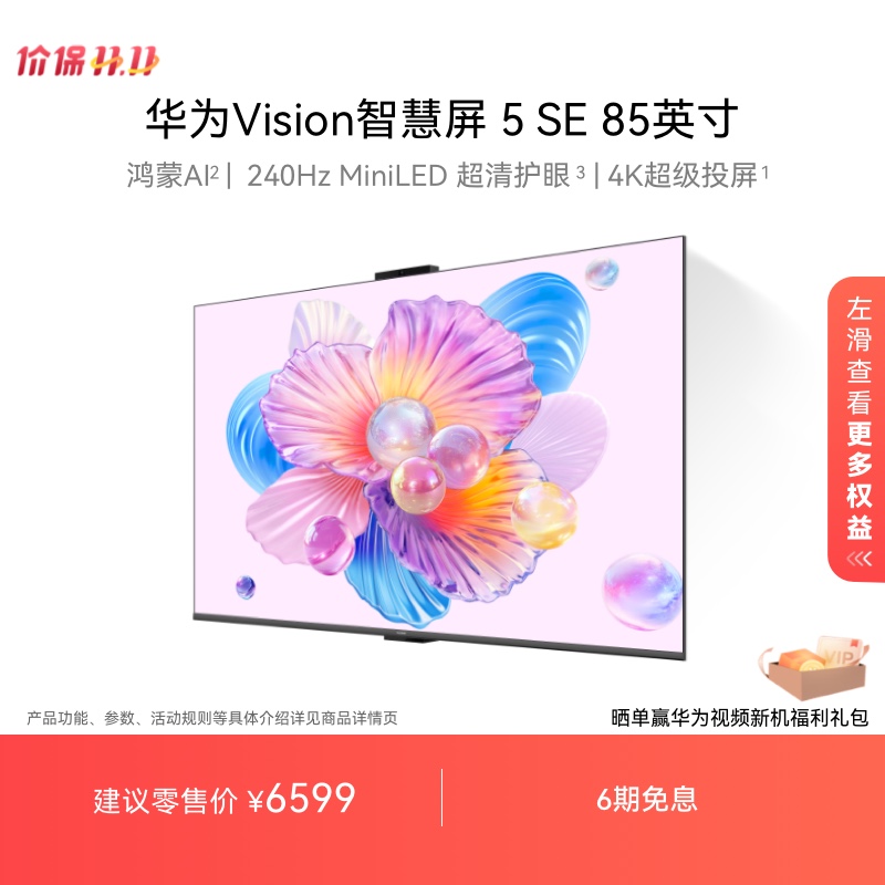 华为Vision智慧屏 5 SE 85英寸 鸿蒙AI搜片 MiniLED电视机4K