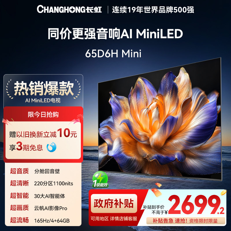 【以旧换新】长虹65D6H Mini65英寸LED智能电视机4K超清语音AITV