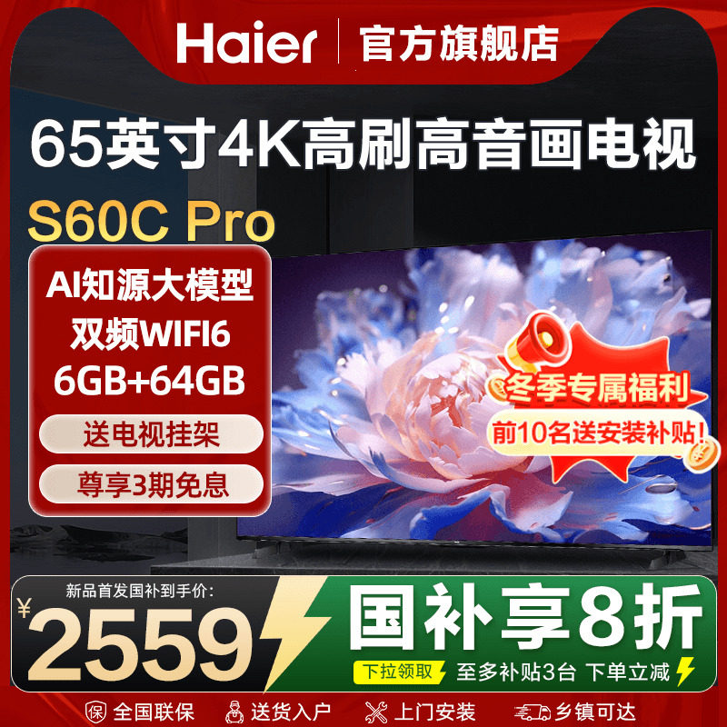 海尔电视65英寸75/85彩电液晶家用电视机4k高刷S60Cpro旗舰店