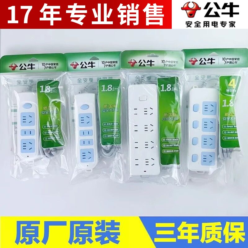 公牛插座插排带线插板1.8米接拖线板3m多孔位家用排插5M长线正品