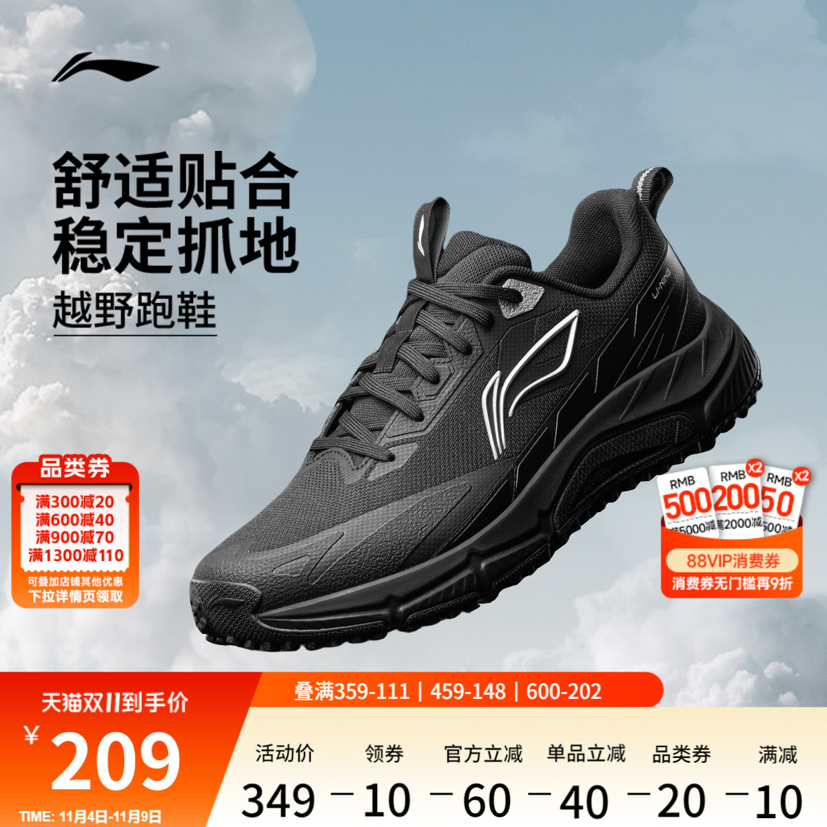 李宁逐风丨越野跑步鞋男鞋秋冬新款户外徒步登山鞋减震黑色运动鞋