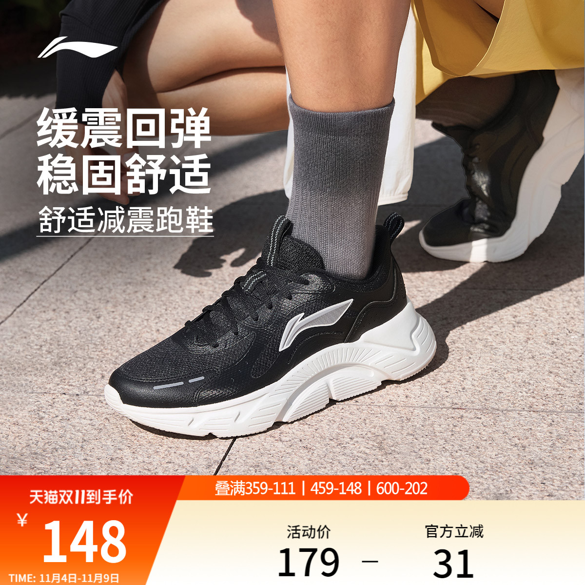 李宁跑步鞋男鞋官方减震耐磨网面轻便透气跑鞋黑色休闲慢跑运动鞋