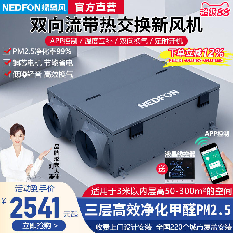 绿岛风双向流新风系统套装家用新风换气一体机空气净化器全屋通风