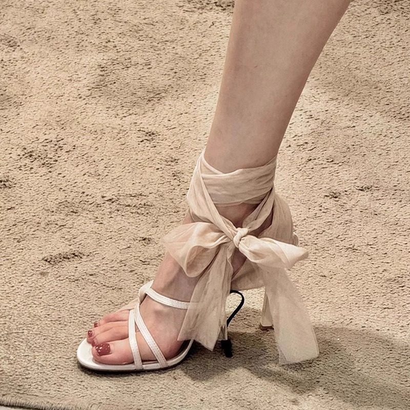 小众绑带绝美露趾细跟百搭高跟凉鞋女夏季2025新款配裙子法式单鞋
