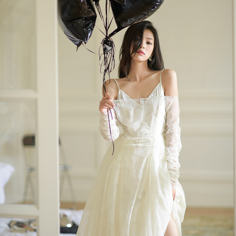 CUICUI崔崔【浮光掠影】清冷感气质罩衫鱼尾吊带连衣裙女两件套装