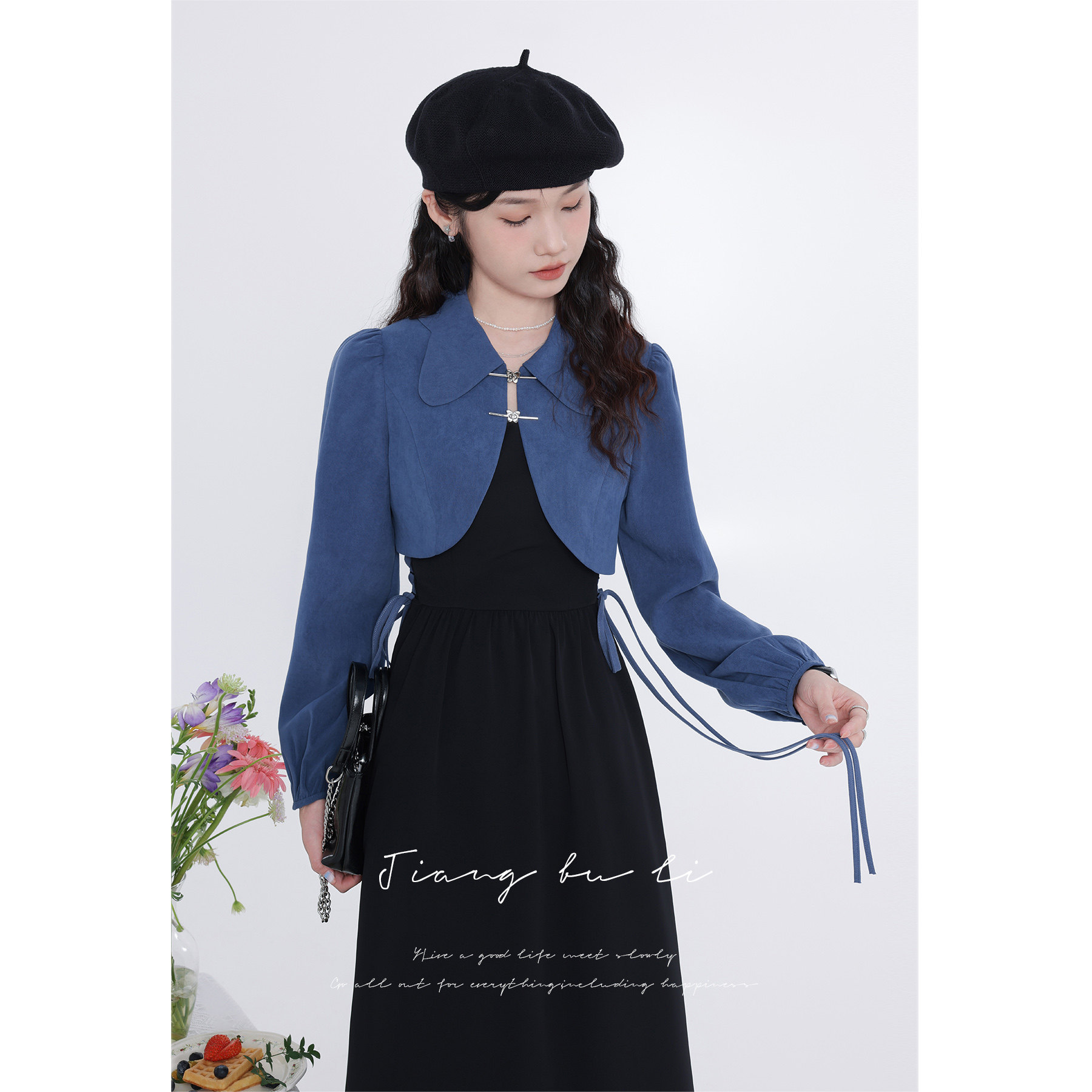 江不离 2025年新款早春法式吊带连衣裙两件套女精致时尚套装
