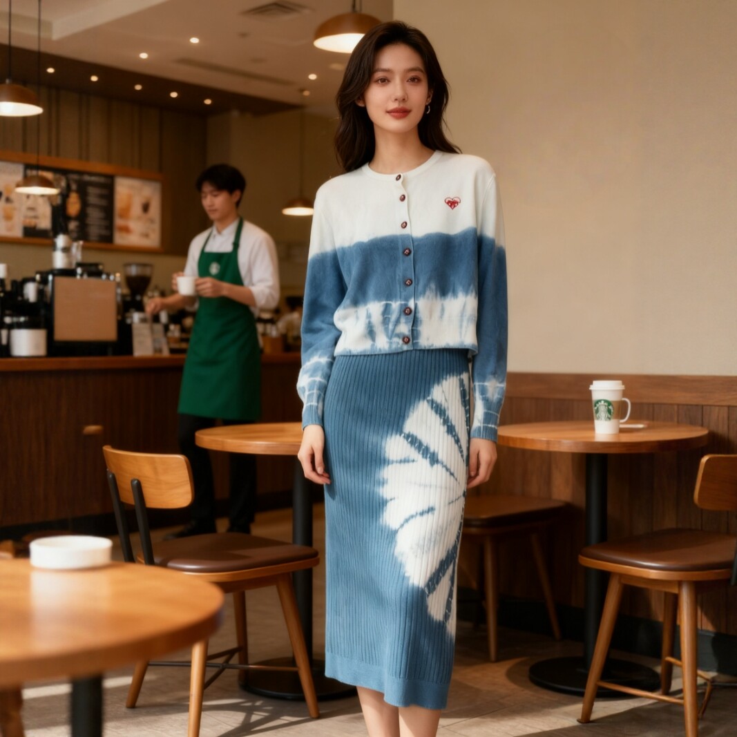 扎染针织吊带连衣裙两件套女秋冬气质修身显瘦背心裙毛衣套装裙子