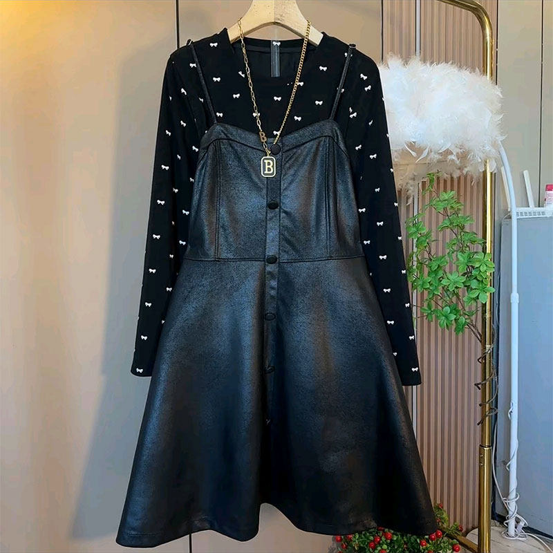 2026春季新款胖mm大码女装欧货时尚百搭打底衫吊带连衣裙两件套女