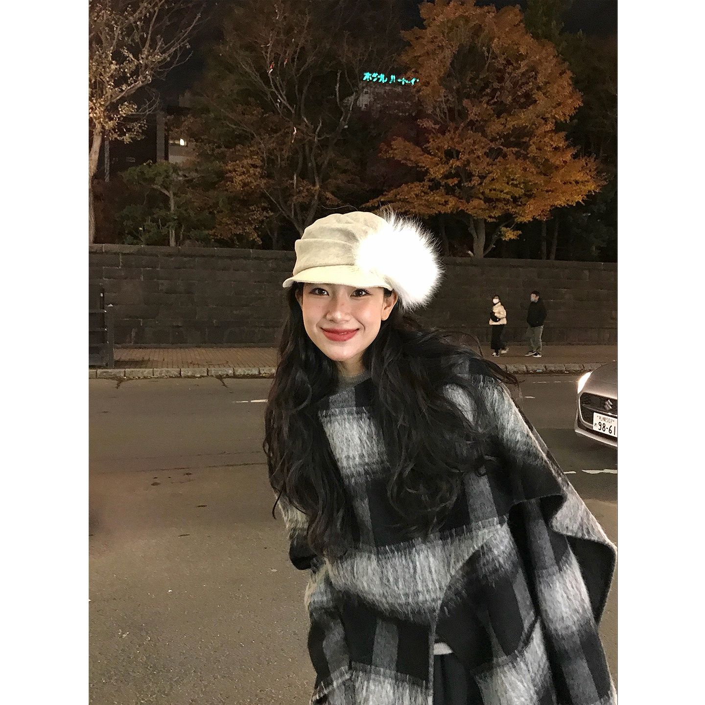 DaqianwithU 羊毛羊驼两面穿披肩新款中长款格子双面呢大衣外套女