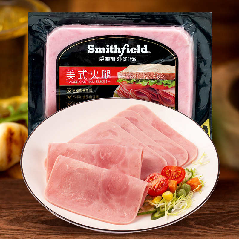 史蜜斯矩形美式火腿片220g每袋精选猪肉切片早餐即食培根三明治
