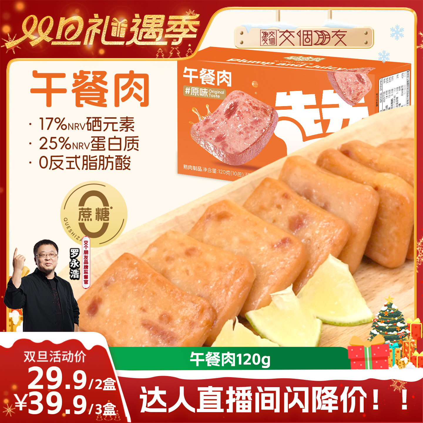 盐津铺子黑猪午餐肉即食火腿午餐肉单独包装单片肠早餐三明治专用
