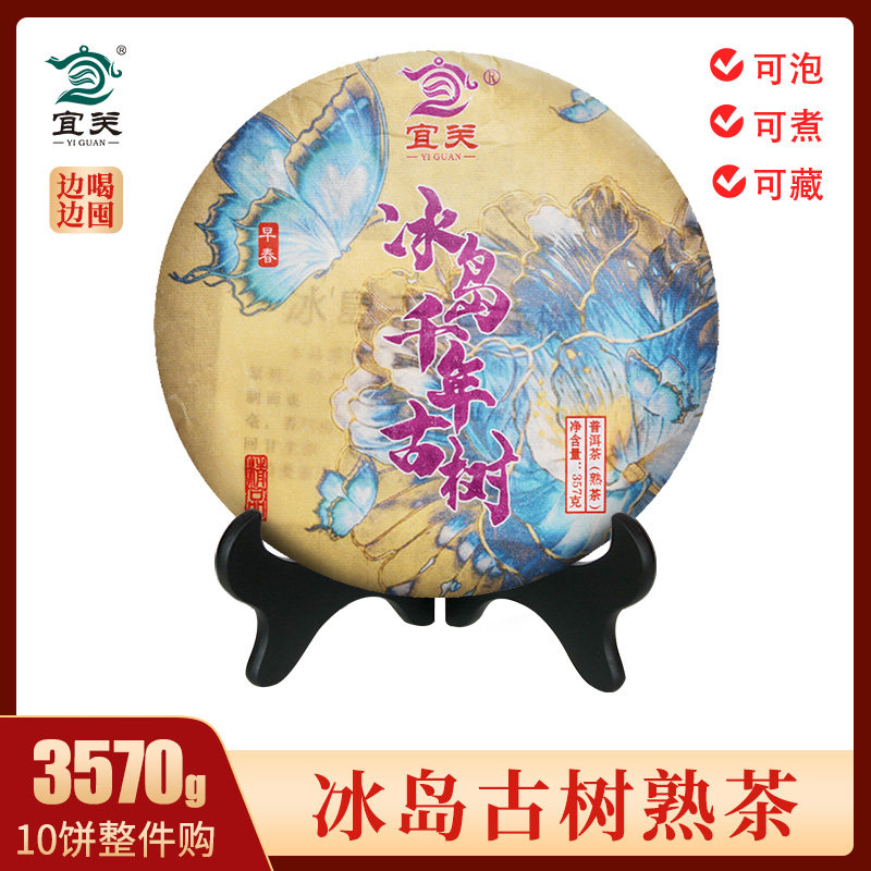 宜关冰岛千年古树熟普洱茶云南普洱茶熟茶饼勐海七子饼茶叶357g