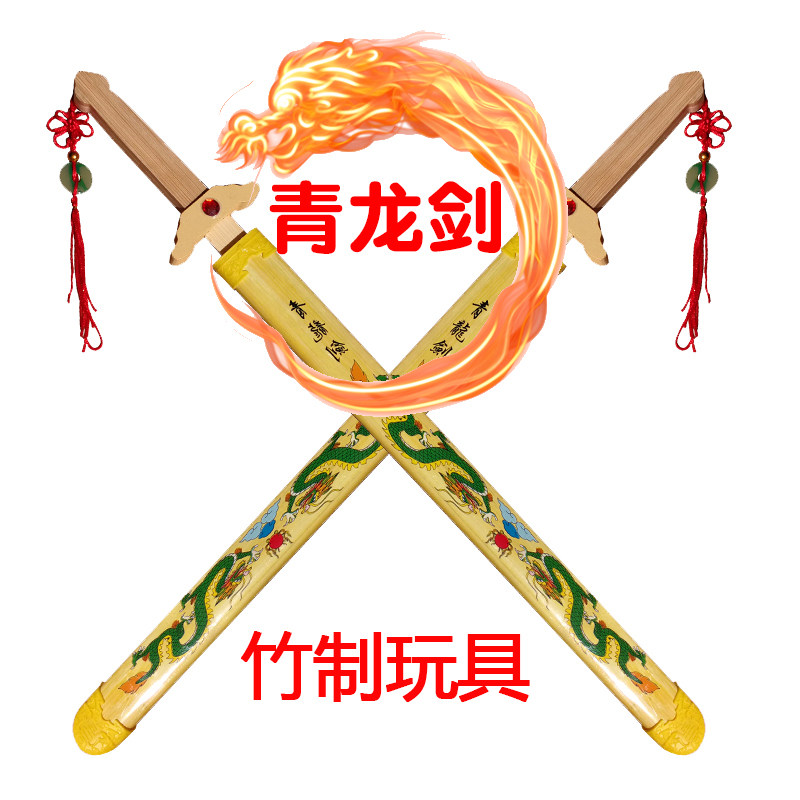 儿童玩具刀剑青龙剑带剑鞘竹木刀剑传统宝剑道具木质刀剑尚方宝剑