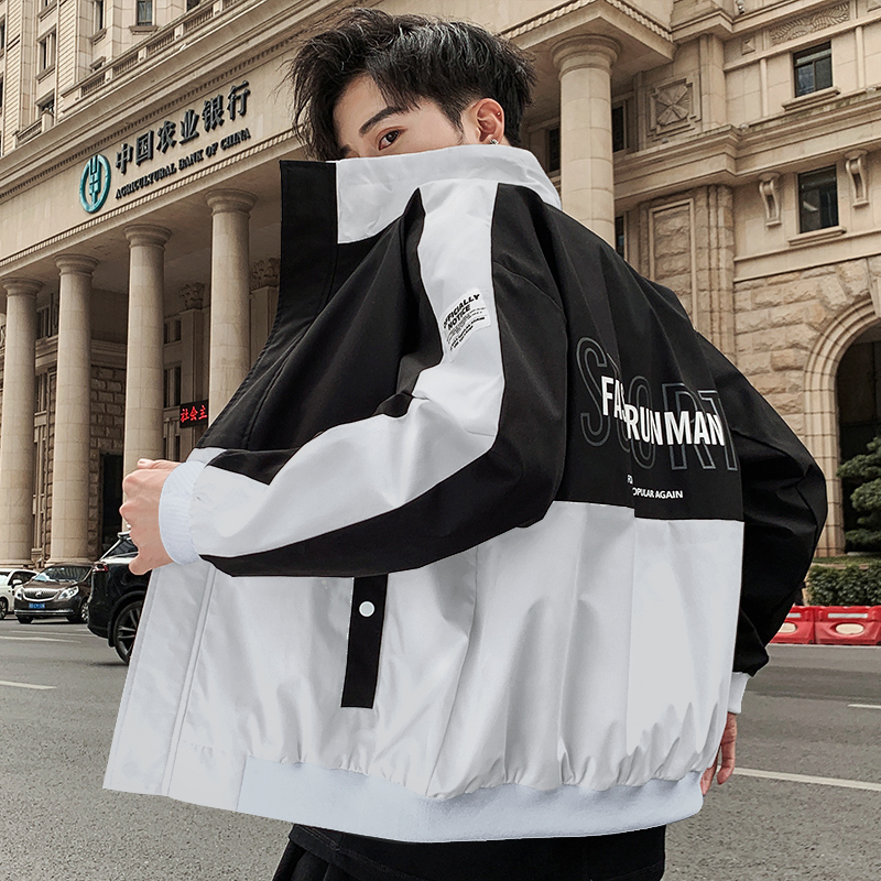 bdpowerup新款秋季外套男薄款时尚撞色印花夹克外套男宽松