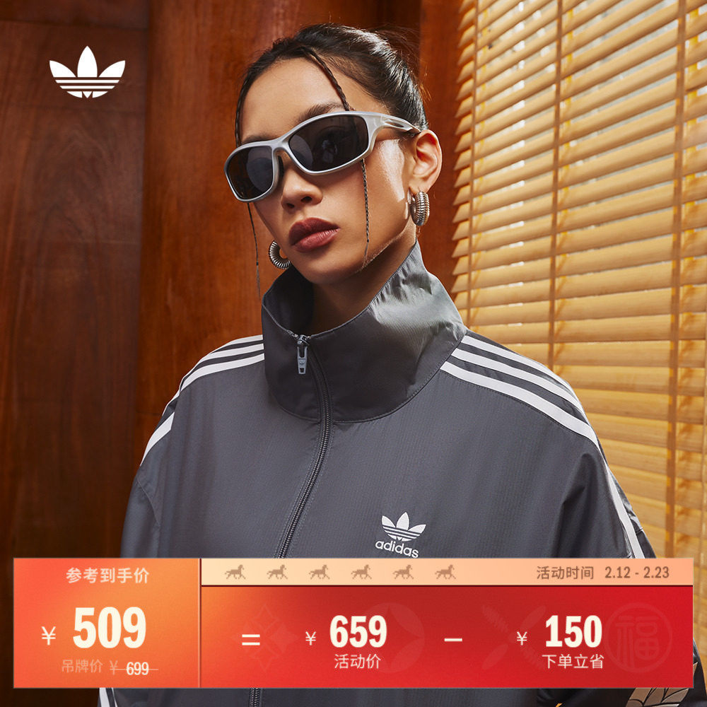 情侣款复古风梭织运动立领夹克外套男女秋季adidas阿迪达斯三叶草