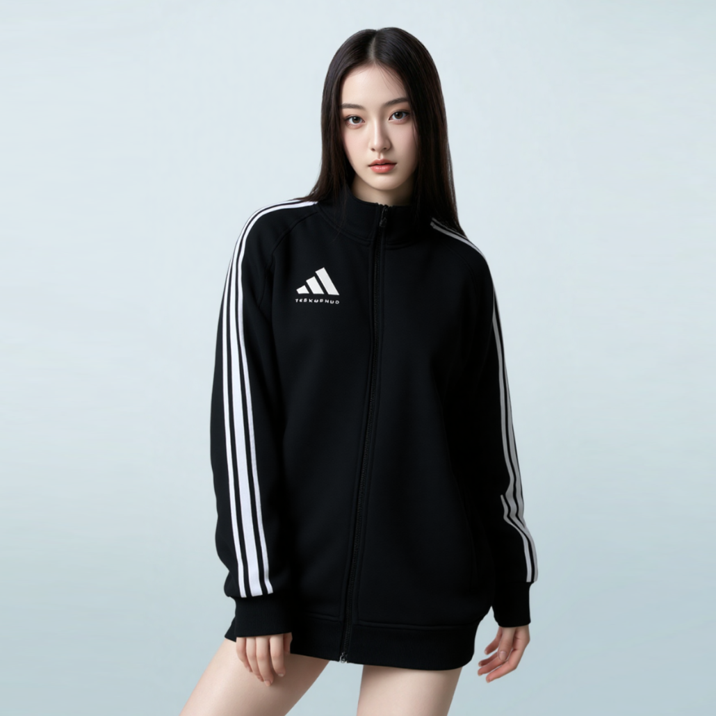 阿迪达斯春秋季外套男女黑白休闲运动新款立领夹克TR30JR1TK-BW
