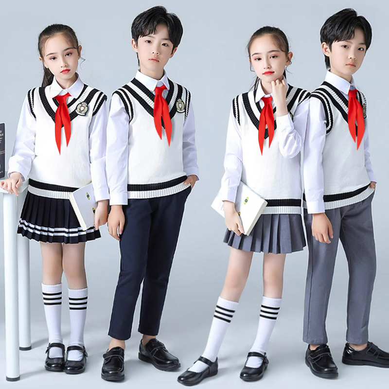儿童演出服秋冬长袖英伦风马甲男女童班服合唱服朗诵开学校服套装