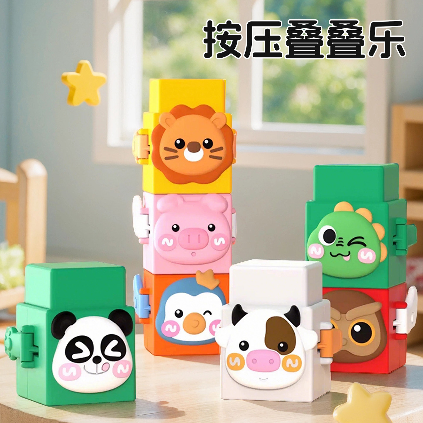 儿童按压叠叠乐动物认知趣味拼搭叠叠高益智力早教1-2岁宝宝玩具3