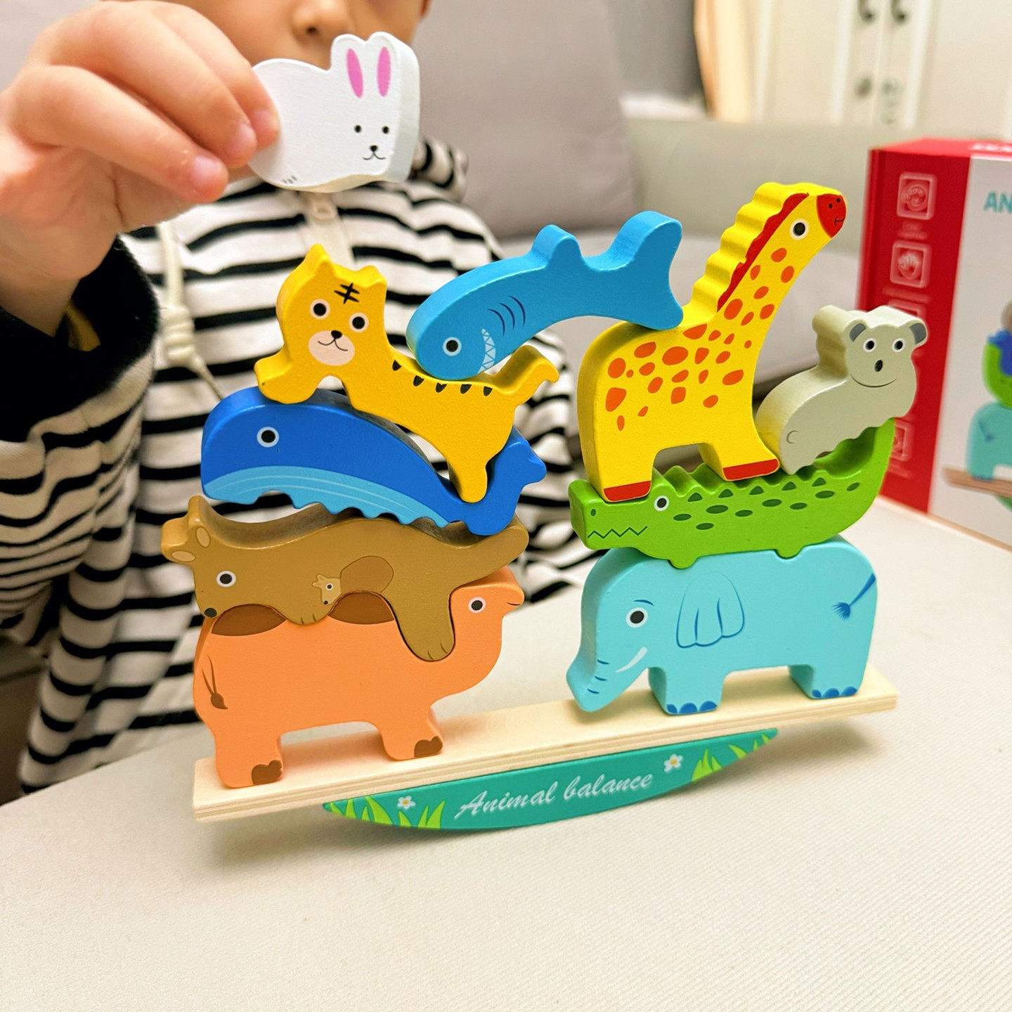 动物平衡积木叠叠高宝宝儿童跷跷板恐龙男孩女孩亲子益智木制玩具