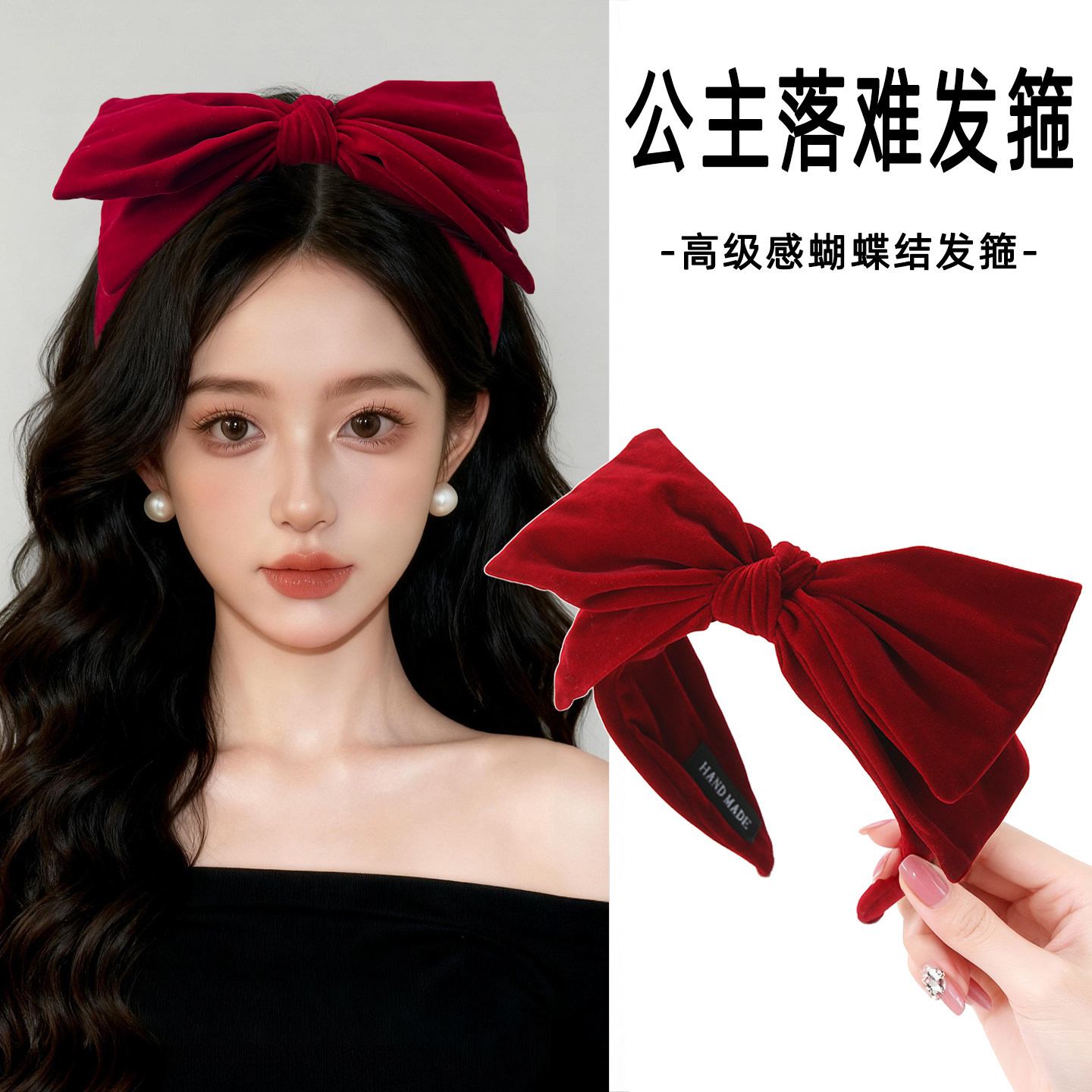 落难公主发箍红色大蝴蝶结头饰头箍秋冬丝绒日常外戴发卡新年发饰