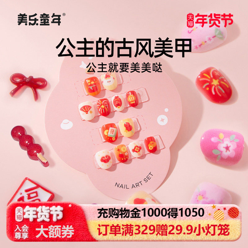 美乐童年古风公主美甲儿童穿戴甲女孩指甲贴2026马年玩具新年礼物